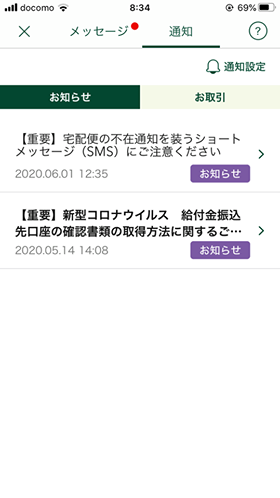 いらない営業のお知らせとかも通知が来たりするし、正直そんなに見ないページです。