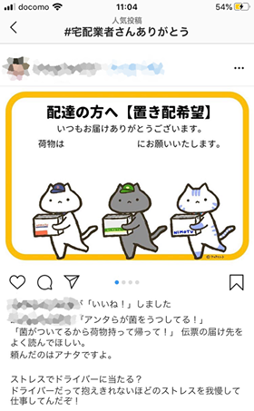 さらに、Instagramでは「#宅配業者さんありがとう」が…