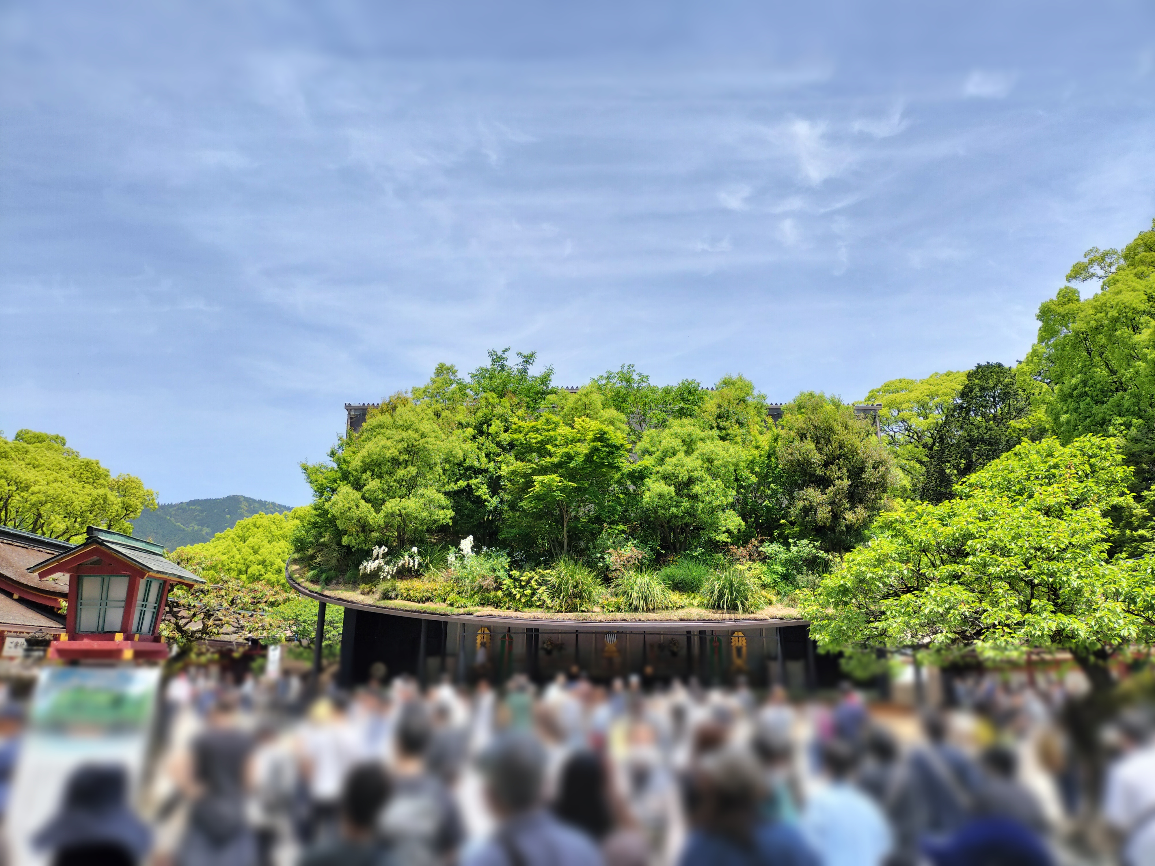 現在、本殿の保存修理工事が行われており、2027年12月まで続く予定です。その間、参拝は仮殿で行われていますが、この仮殿も建築家・隈研吾氏の設計により話題となっており、新たな観光の見どころとして注目を集めています。